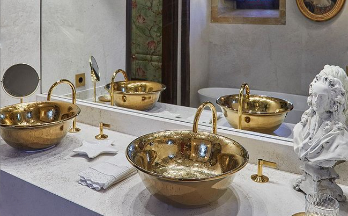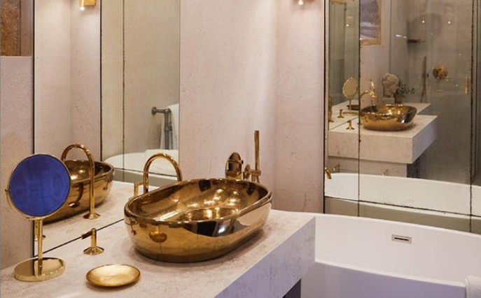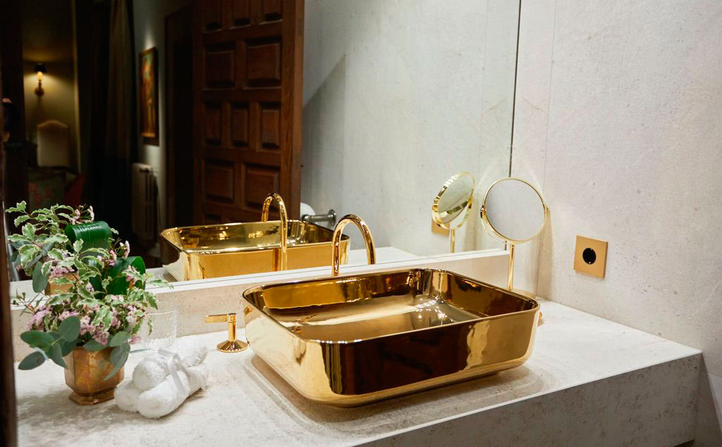 En el baño se encuentra el lavabo Dinan rectangular gold.