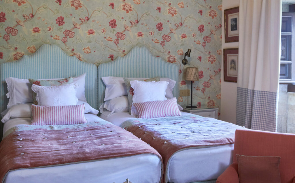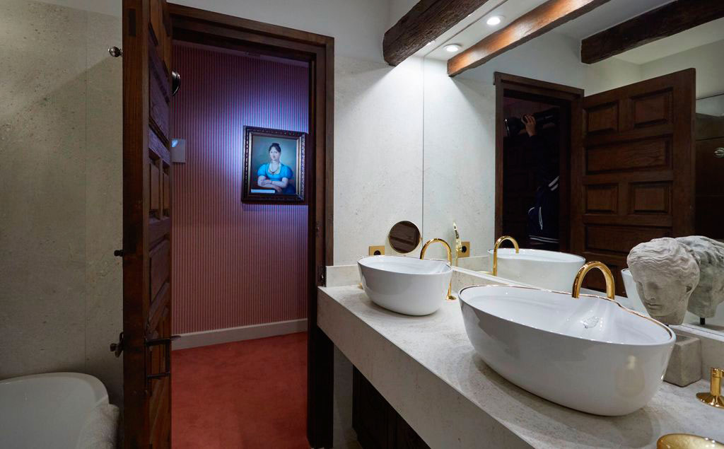 Característica por su entelado en cretona inglesa, los artesonados iluminados de su techo y el contraste de sus elementos decorativos como los lavabos New Nordic dorados y estampados.