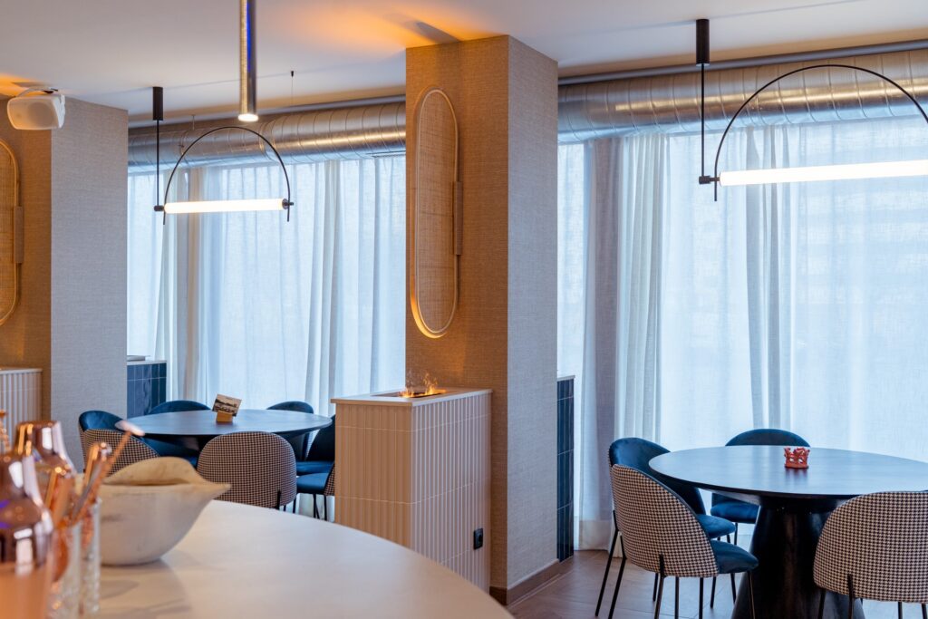 En Azul Mediterráneo, una arrocería de Valladolid, se preparan arroces a vista del cliente y fue el Estudio A Rayas con Elisa Pindado el que se enfrentó a la premisa de ambientar un local desde cero que evocase ese recuerdo que todos tenemos de los veranos en la playa, comiendo una típica paella y pasando buenos ratos en familia.