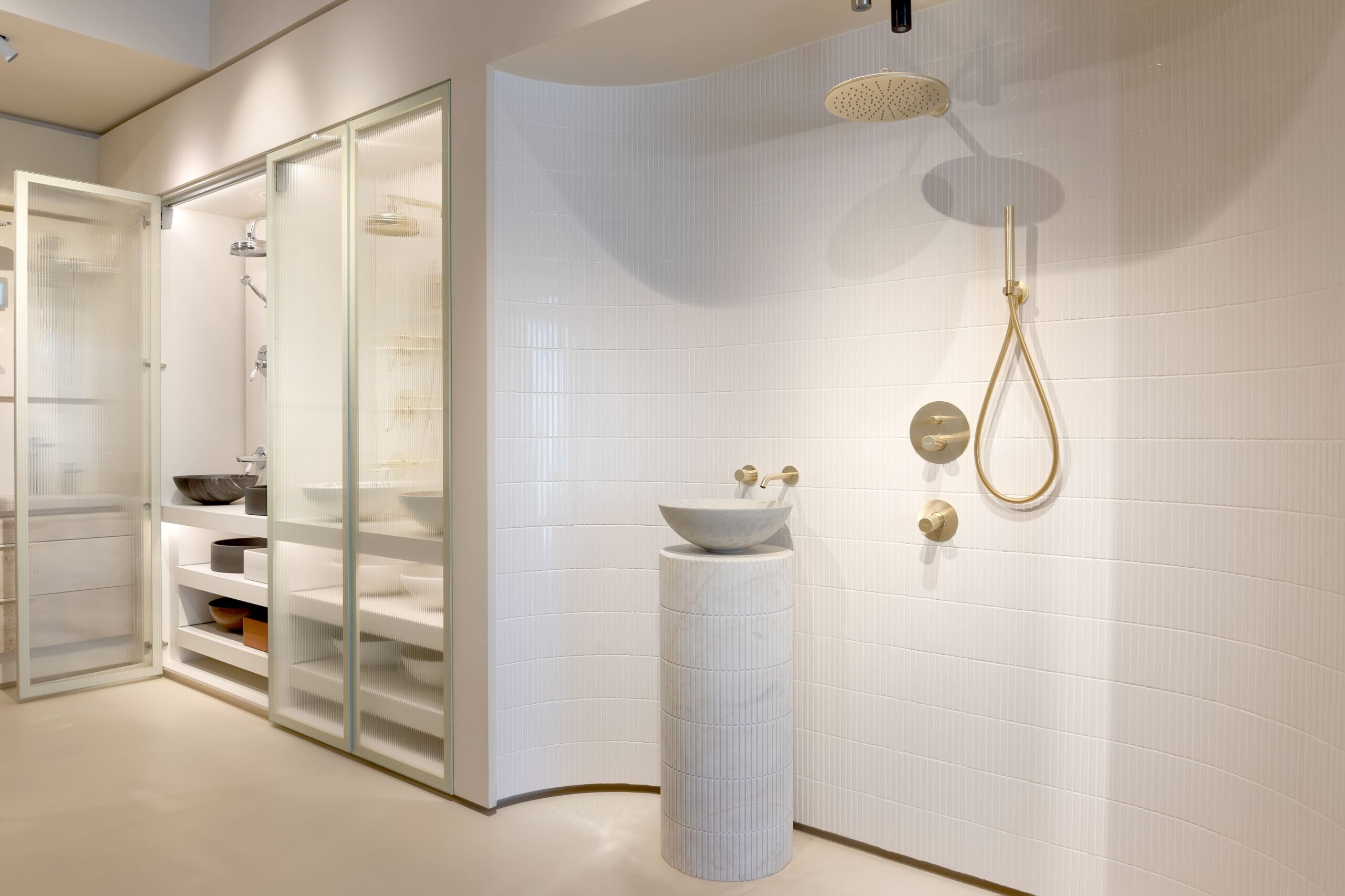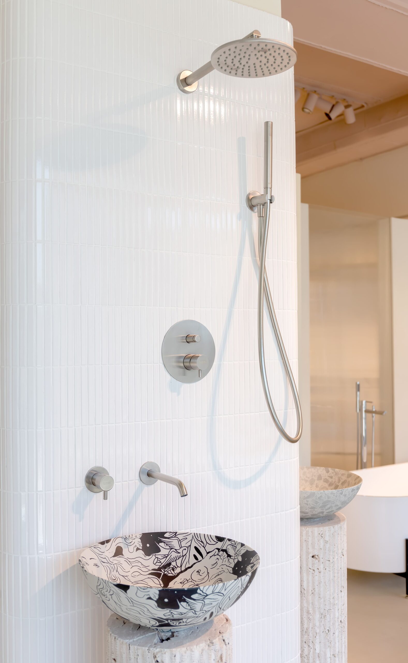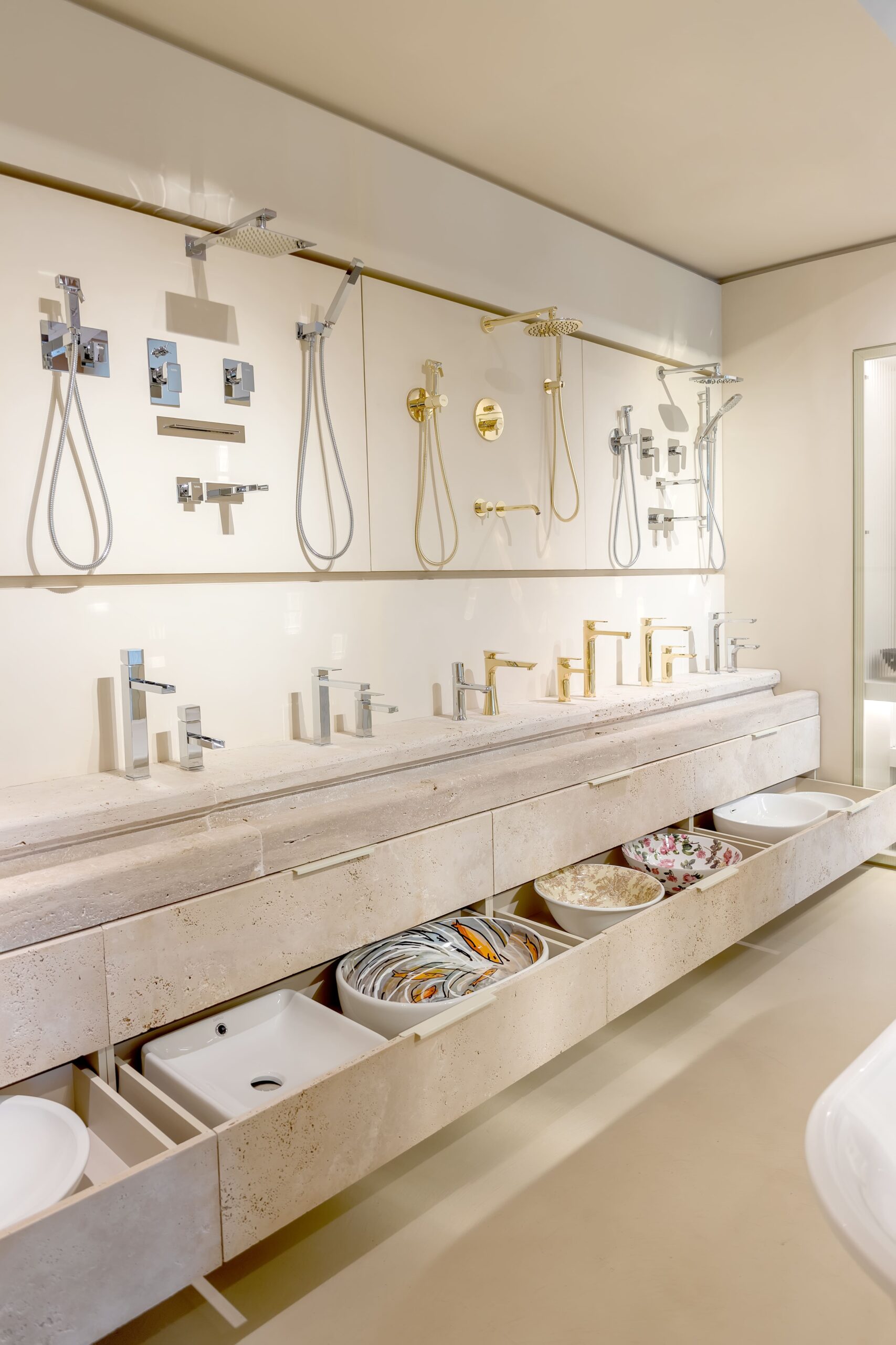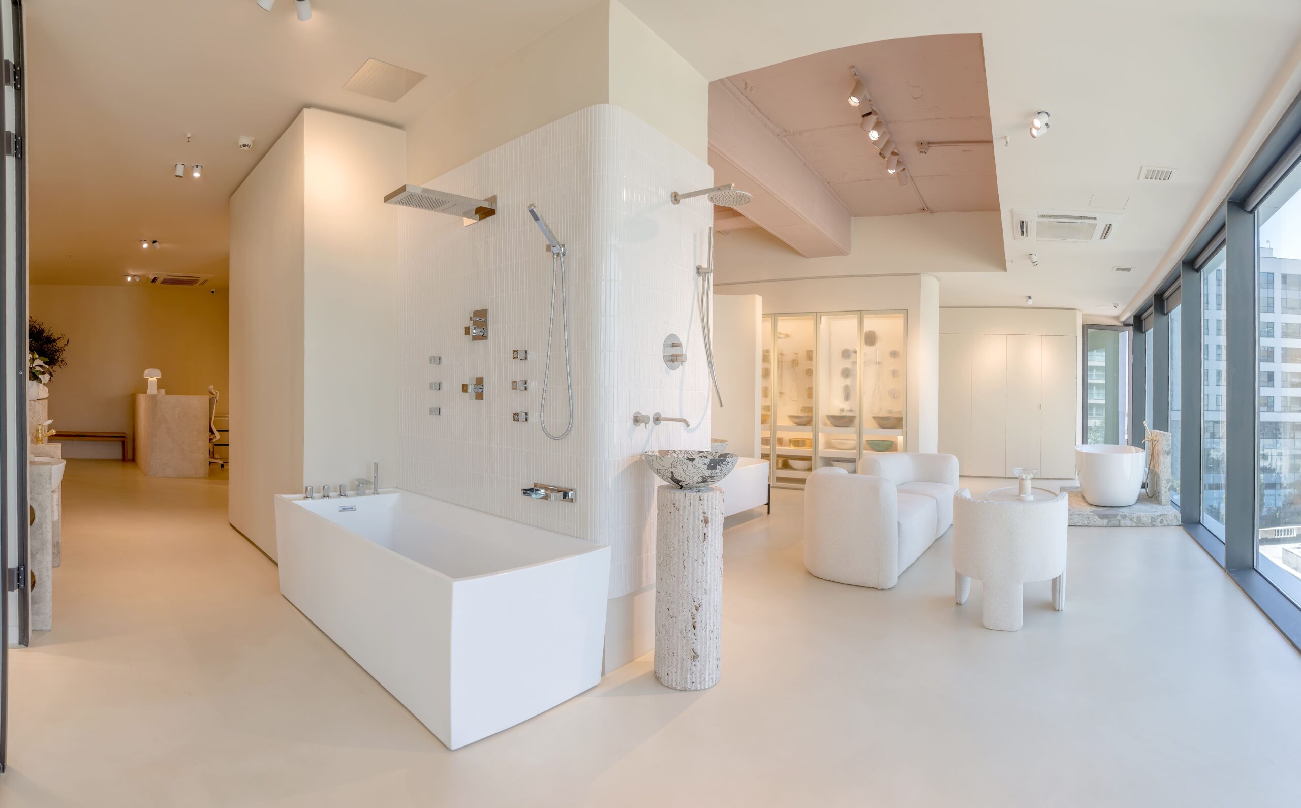 La directora general de Zhemaan, Solmaz Gharibi Kalibar, comparte la dedicación y esfuerzo que se ha invertido en la creación de este showroom único: «Hemos estado trabajando para diseñar y dar vida a este espacio. Creo que no podría haber una mejor manera de mostrar los productos Bathco que representan la esencia misma de nuestra visión».