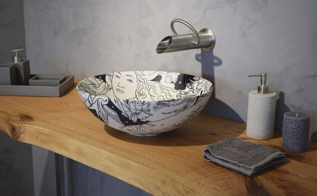 En esta ocasión, se presentan dos piezas cuyo estampado se ha diseñado digitalmente para ser impreso en calcas cerámicas. Estas se aplican manualmente sobre el lavabo New Lys de porcelana natural que ofrecen un acabado mate que confiere sutilidad a la decoración del baño.