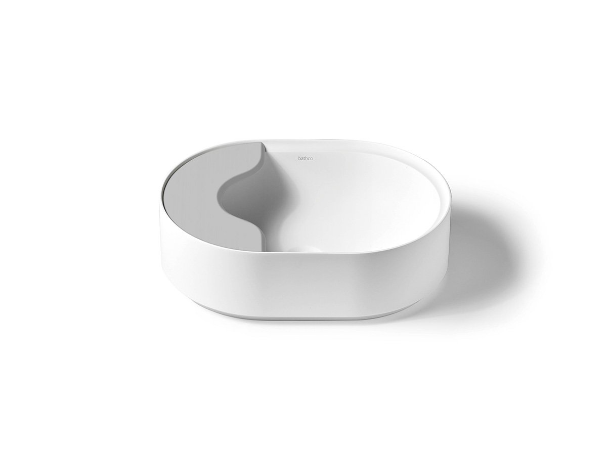 Esta bandeja circular es un accesorio, fabricado en bambú,fabricado en bambú en color gris para colocar como complemento al lavabo Seceda circular y oval.