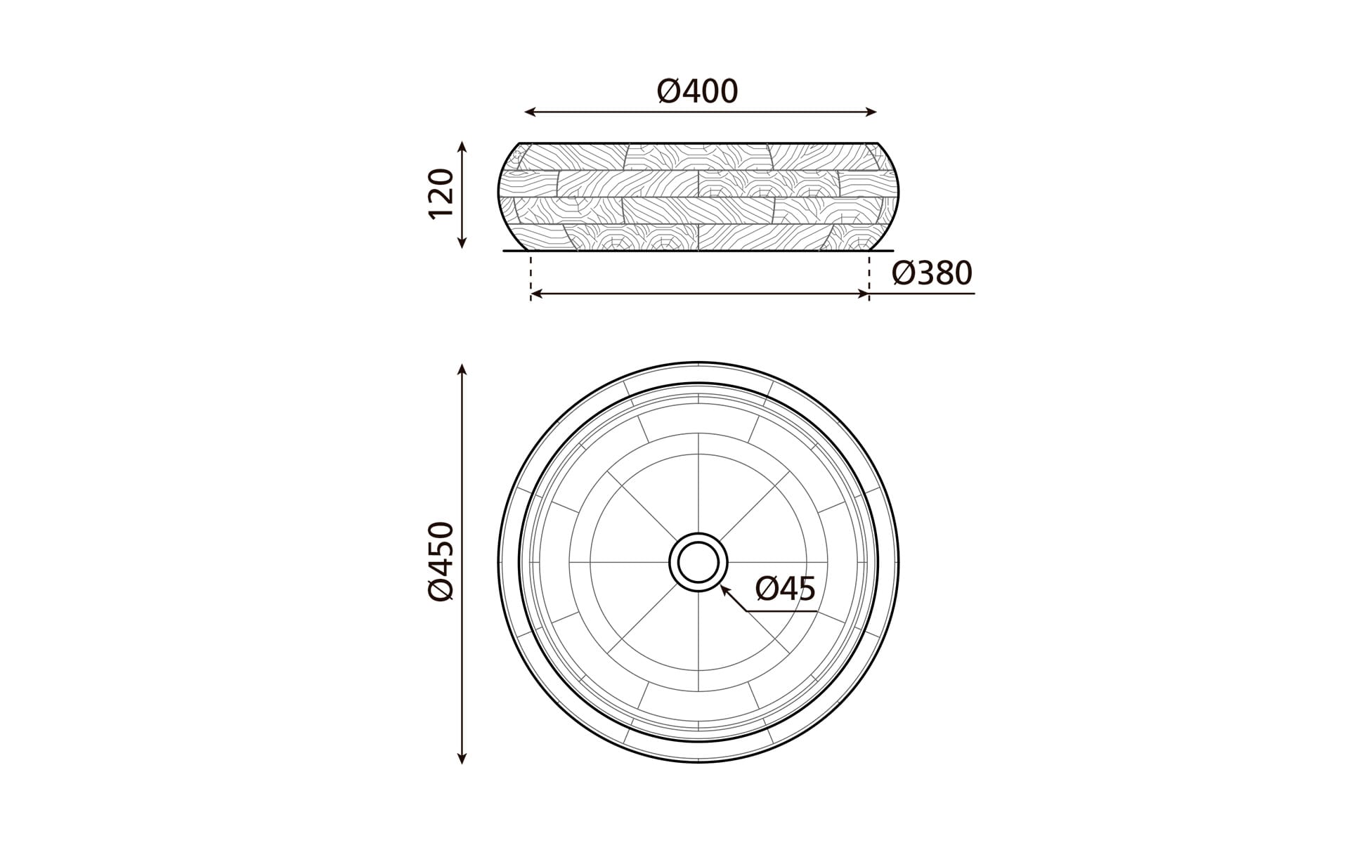 Un lavabo circular realizado en madera de acacia. Fabricado con bloques ensamblados y pulidos, combina calidez natural y un proceso artesanal que resalta la belleza del material.