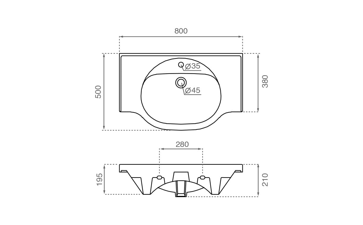 Un lavabo rectangular suspendido en porcelana brillo. Su diseño depurado aporta sobriedad y amplitud visual al espacio de baño.
