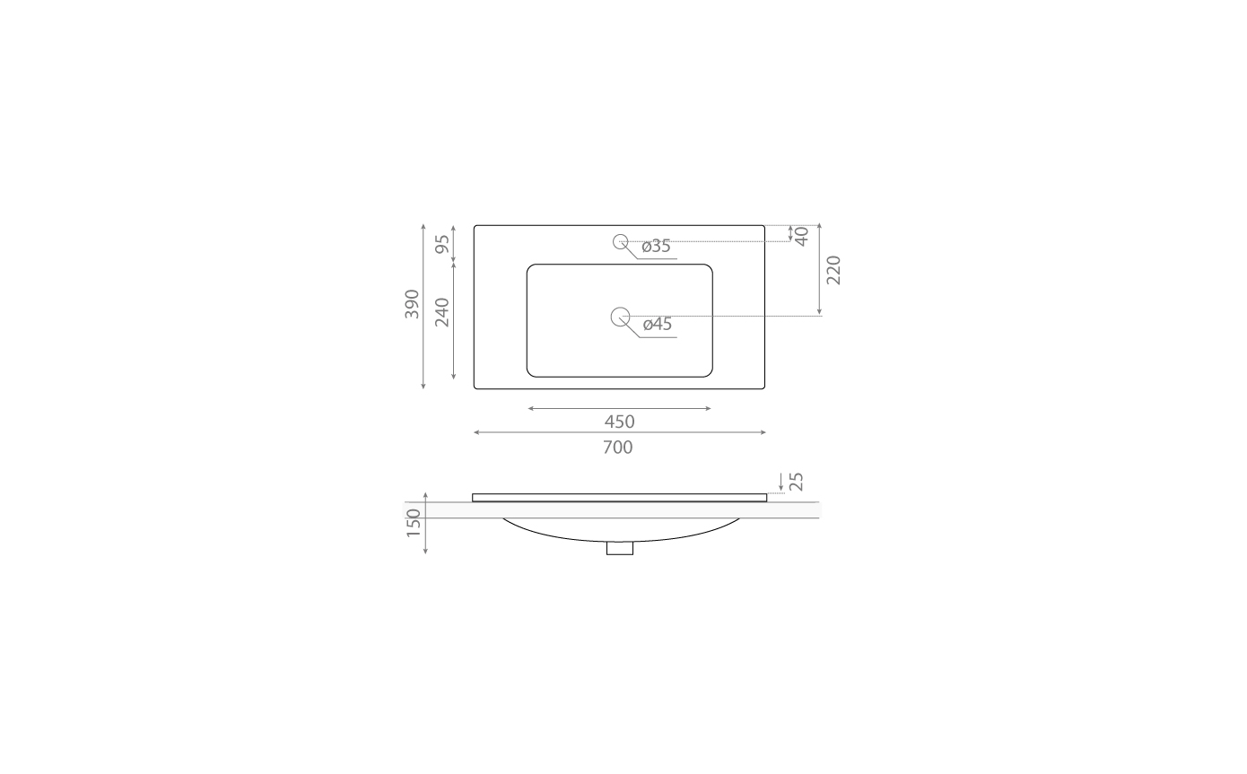 Un diseño rectangular en porcelana brillo pensado para instalar sobre mueble. Líneas limpias y un gesto contemporáneo que equilibra practicidad y estética.
