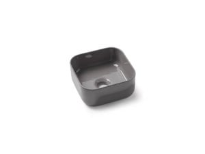 Cube 30 Graphite es un lavabo cuadrado de instalación sobre encimera, fabricado en porcelana con acabado brillo en color graphite