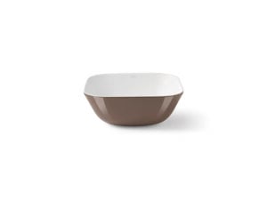 Davos Oval Caramel es un lavabo oval de instalación sobre encimera, fabricado en porcelana con interior en acabado blanco mate y exterior en brillo en color caramel