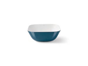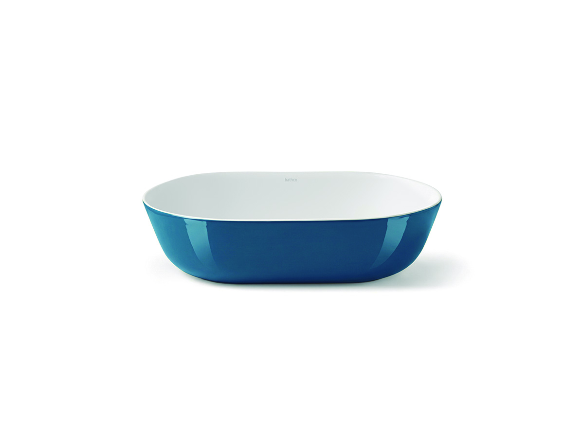 Davos Oval Navy es un lavabo oval de instalación sobre encimera, fabricado en porcelana con interior en acabado blanco mate y exterior en brillo en color navy