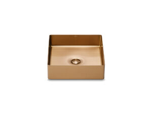 Acabado bronce cepillado para una presencia cálida. Un circular de sobre encimera que introduce un acento sofisticado.
