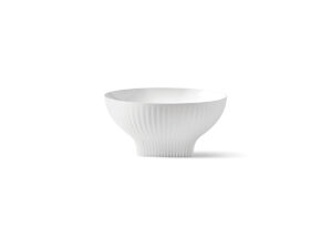 El óvalo en porcelana con relieve ofrece continuidad y equilibrio. Una pieza de sobre encimera que refuerza la claridad visual.