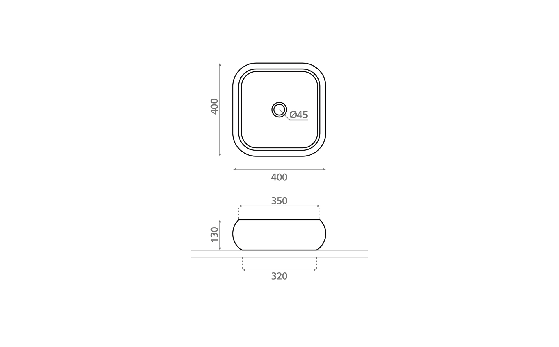 Formato cuadrado en piedra natural beige. Un lavabo de sobre encimera con una lectura contemporánea y elegante.