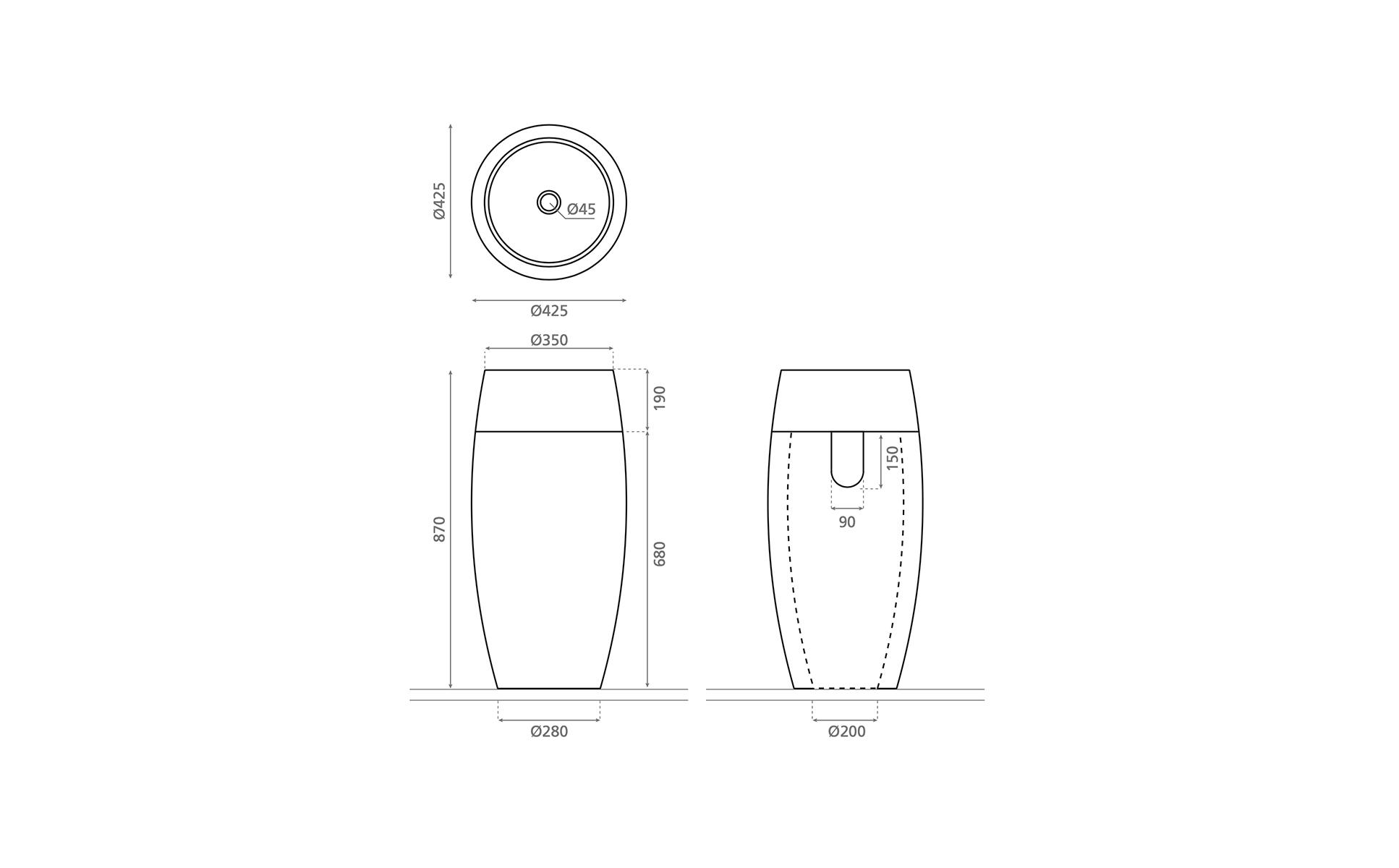 La piedra natural se eleva en un formato pedestal de fuerte presencia. Un lavabo escultórico que dota al espacio de autenticidad.