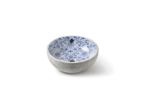 Inspirado en la estética nórdica, se ofrece en formato circular, oval y pedestal. Cada pieza de porcelana está pintada a mano, aportando frescura y un estilo gráfico inconfundible.