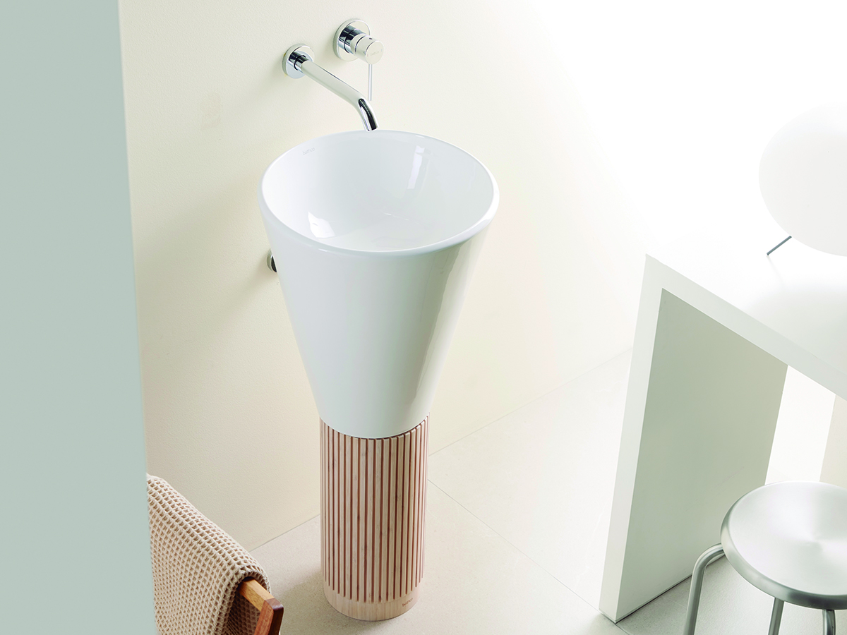 Hekla es un lavabo circular de instalación sobre encimera, fabricado en porcelana en color blanco