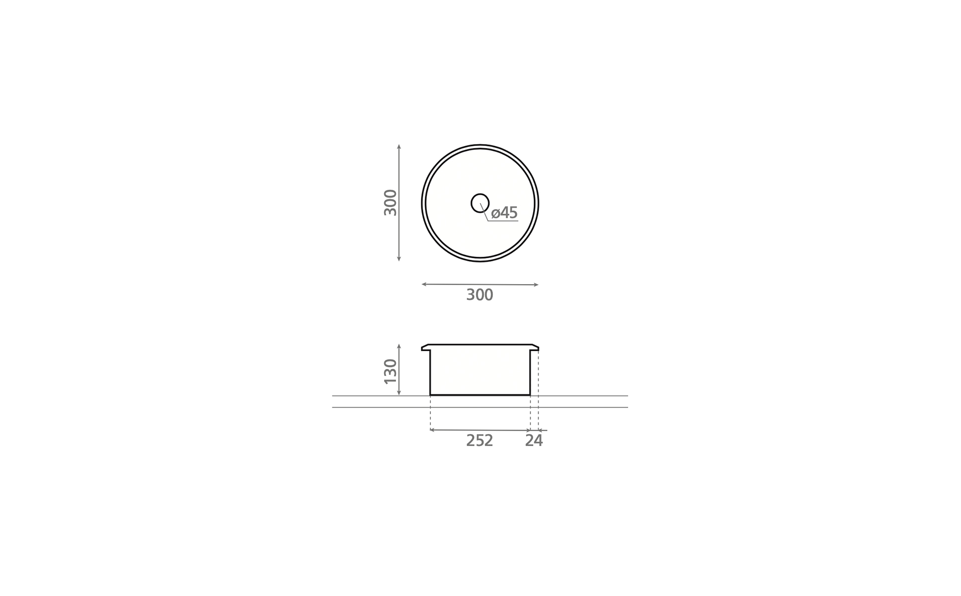 Lavabo circular en piedra natural, disponible en acabados beige, gris oscuro o doreng. De instalación sobre encimera, combina compacidad y fuerza mineral.