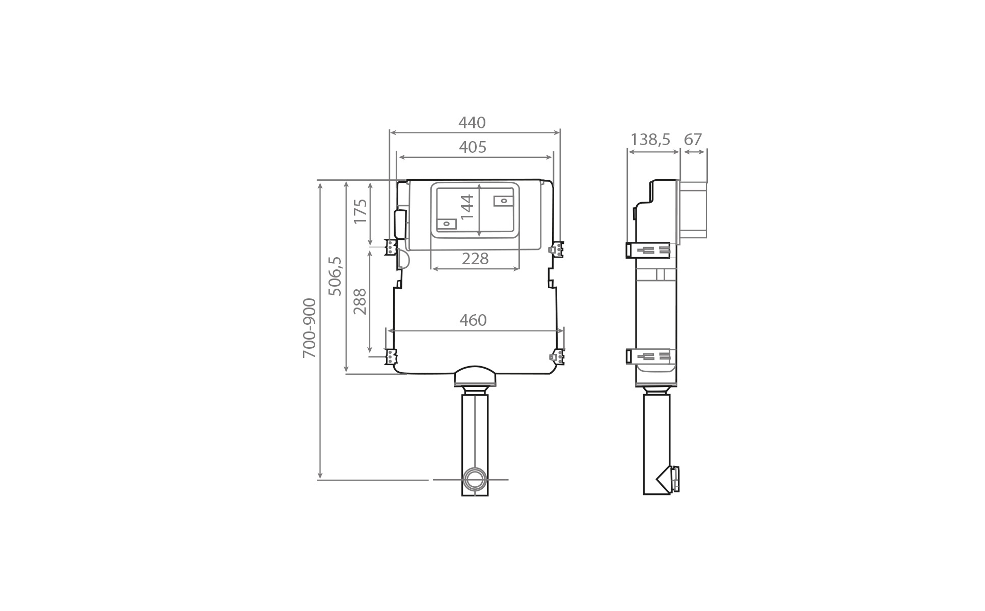 Sistema para cisterna empotrada con pulsador cromado, blanco o negro. Incluye cartucho cerámico y componentes de instalación, garantizando fiabilidad y durabilidad en el uso diario.