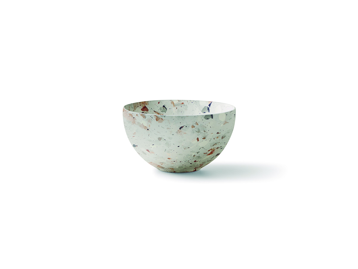 Mini Lys Terrazo Terranova es un lavabo mini de instalación sobre encimera, fabricado en porcelana con acabado decorado con terrazo terranova