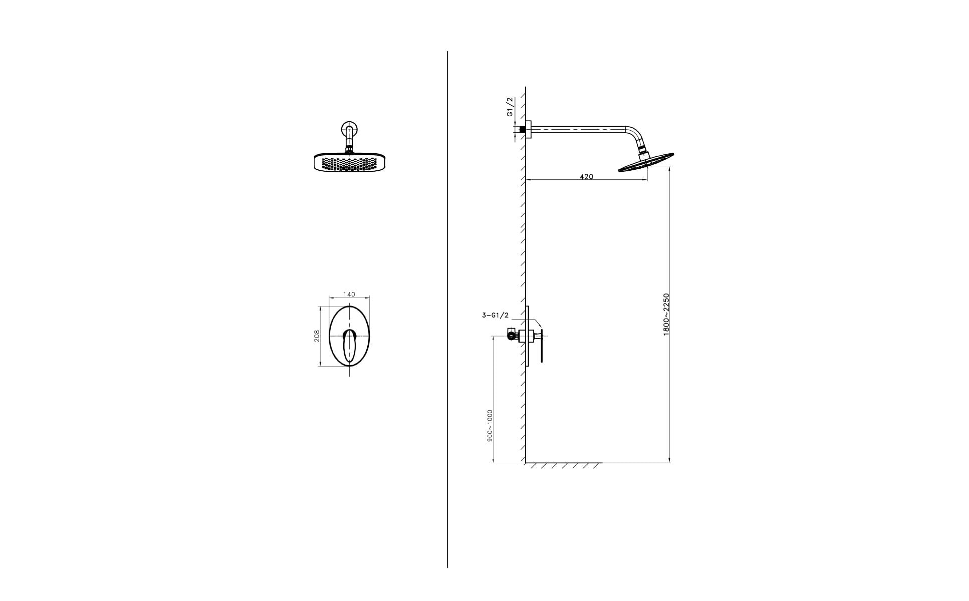 Conjunto mural para ducha con grifo monomando. De acabado gris y líneas minimalistas, aporta practicidad.