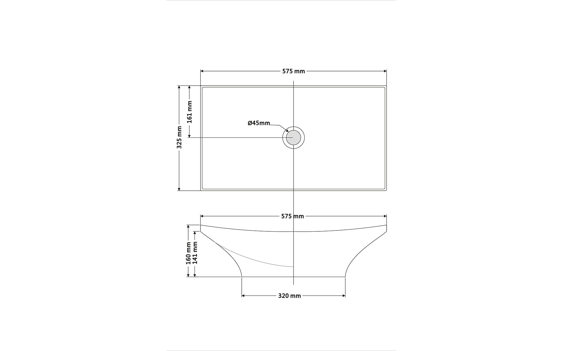 Lavabo rectangular sobre encimera en porcelana, líneas sobrias y borde fino; disponible en blanco brillo y en porcelana natural.