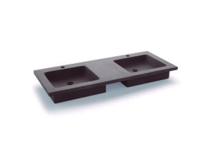 Lavabo rectangular de cemento. Su materialidad y líneas rectas aportan fuerza y sobriedad.