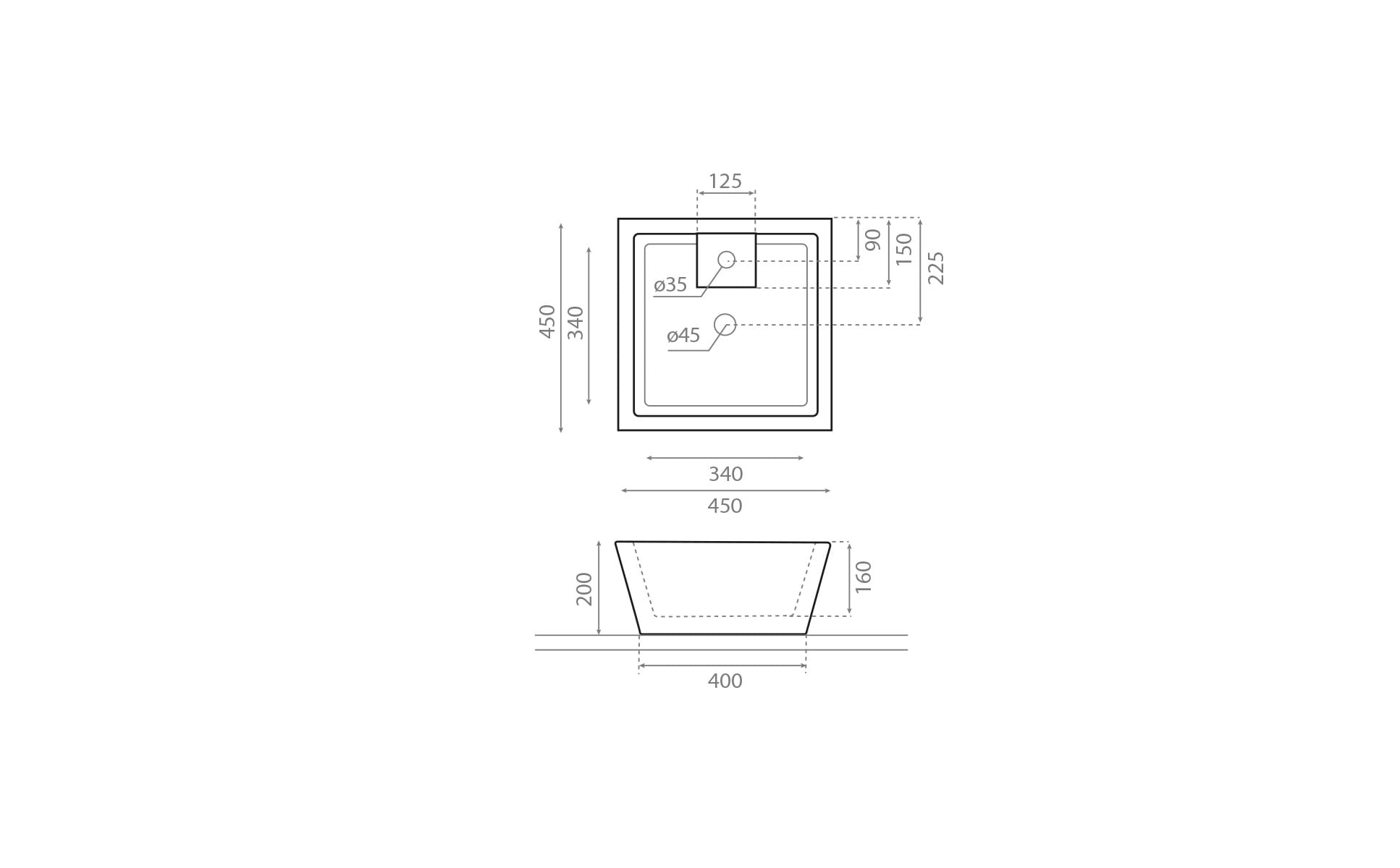 Lavabo cuadrado de piedra natural en tono beige. Un bloque de solidez y presencia que resalta la nobleza del material.