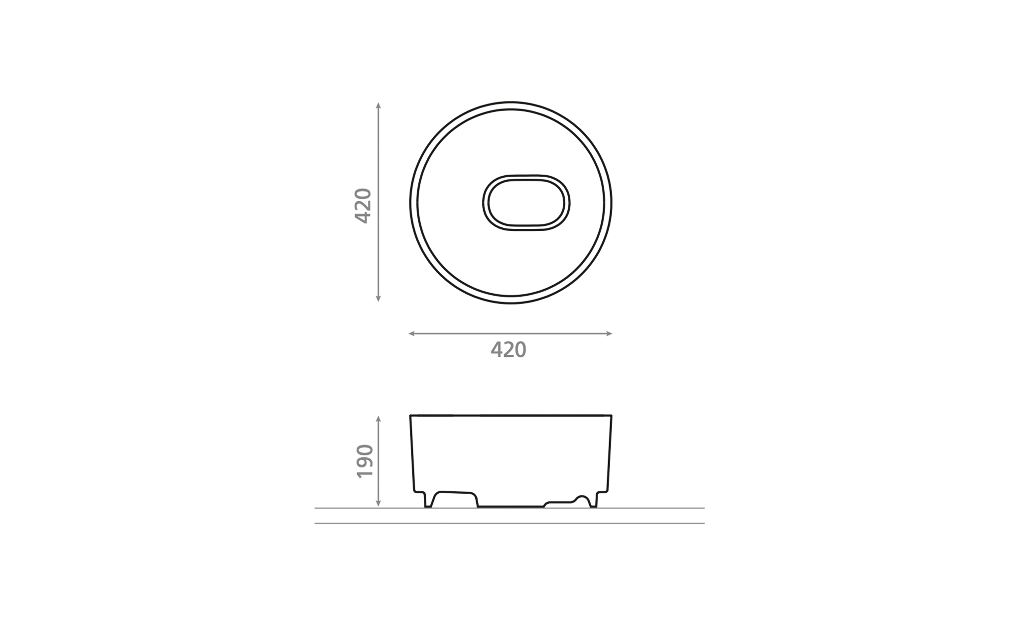 Lavabo circular en composite, disponible en blanco, gris claro y gris oscuro. Una serie versátil que combina resistencia y sobriedad estética.