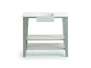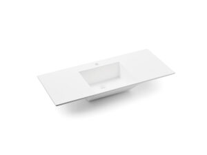 Colección que combina muebles y lavabos en solid surface blanco, en distintas dimensiones. También disponibles versiones solo lavabo, para mayor flexibilidad en proyectos.