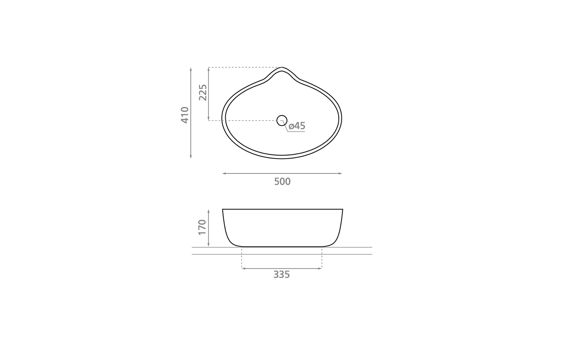 Un lavabo oval en porcelana blanca con filo dorado de instalación sobre encimera. Su diseño sencillo y funcional lo convierte en una opción versátil para distintos estilos de baño.