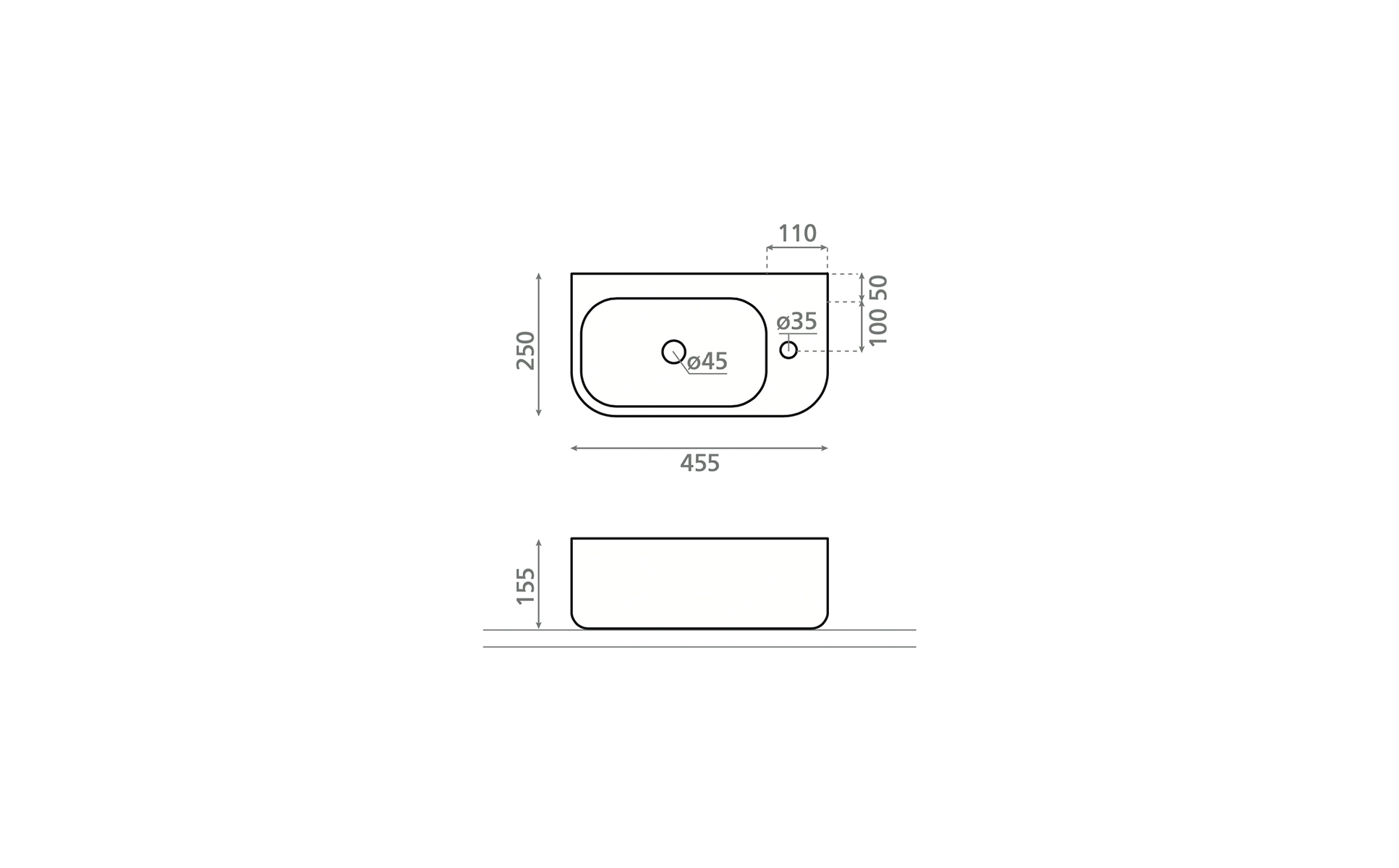 Lavabo mini de porcelana con instalación suspendida o sobre encimera. Una solución compacta y versátil, ideal para baños pequeños que buscan funcionalidad sin renunciar al diseño.